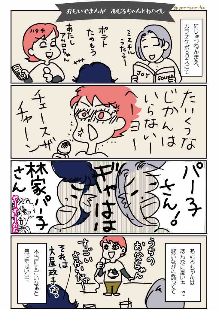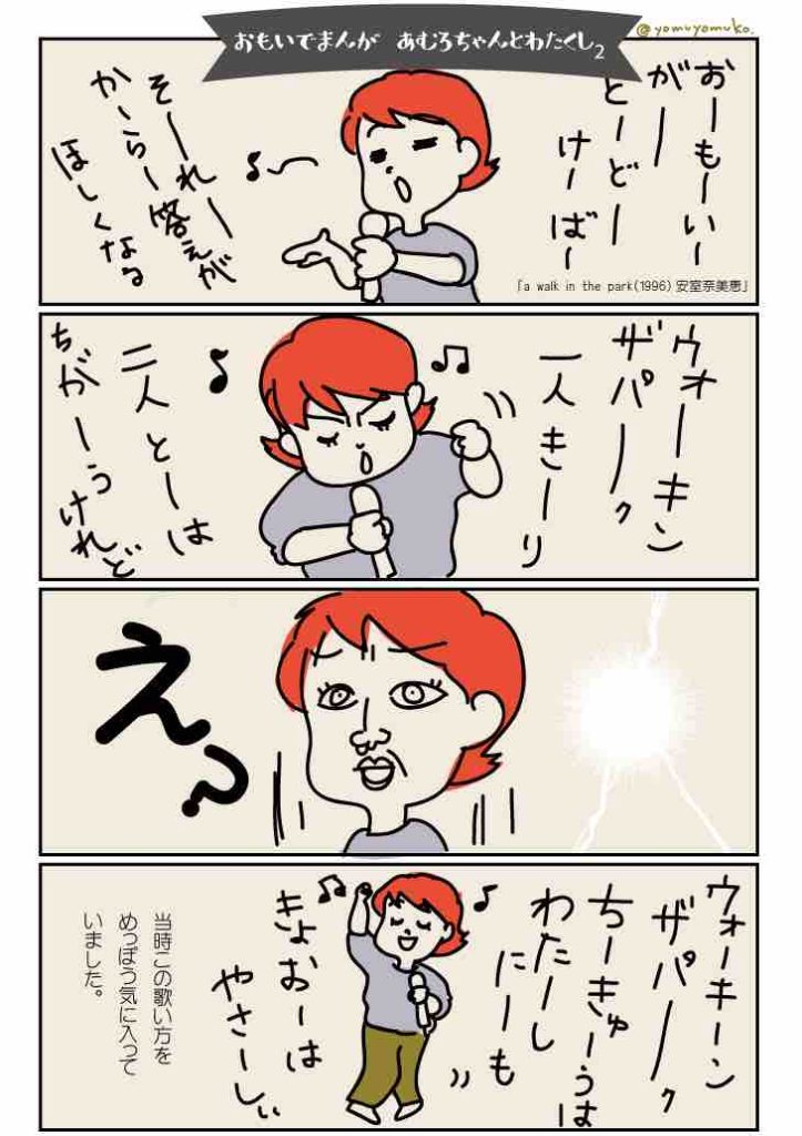2018.07.02 2018.11.22 ジャスアナザデイ~よむこ日記~masteryomuko 思い出まんが。〜あむろちゃんとわたくし〜 同い年ですし、一世風靡したころ 少なからず影響を受けたはずなんですけども 例えば、田中角栄とかイチローとか、あむろちゃんと例え「タメ」であっても 見てきた景色が違いすぎてもう「たまたま同じ年に生まれた異世界のお方」って感じですよね…。 世界中にあなたからパワーをもらった人がいるのだし、これから誰のためでもない、ご自分の時間を過ごすのなら それが豊かな時間になるよう祈ります!