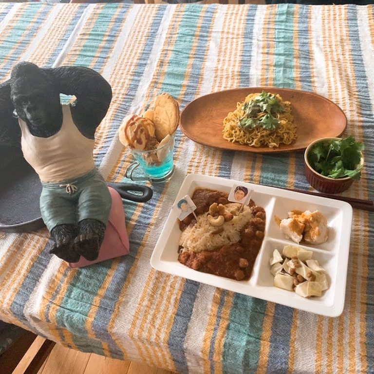 それぞれ家族に試食してもらいました。パクチー好きの夫は焼きそば、息子はパフェ、ほかもおおむね好評でありました。