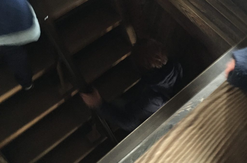 子供たちを滑り落としてはイカンと、手すりへし折れるくらい握りつかんで降りました・・・
